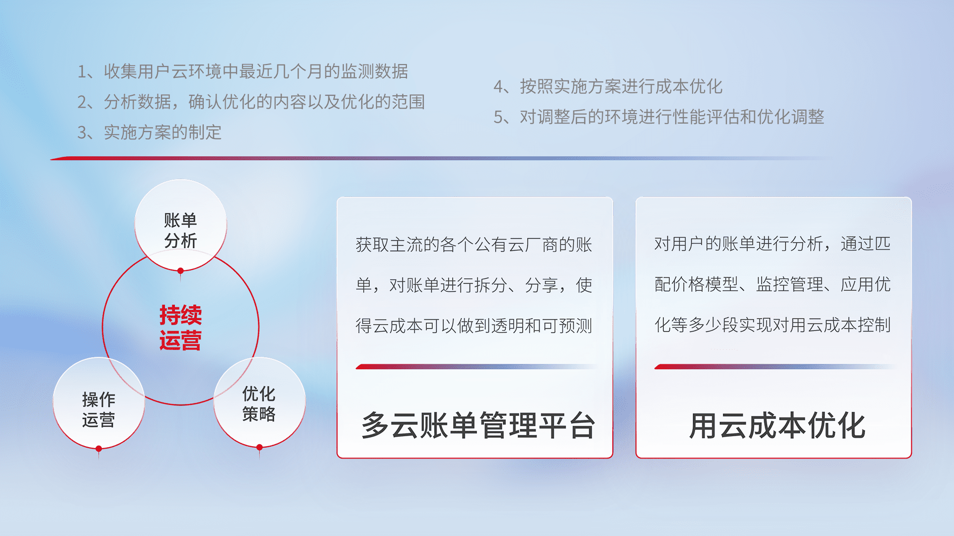 运用智能化工具分析云资源,,,提供日常费用可视化工具,,,,自动账单拆分,,,,成本优化云上费用,,,降本增效。。。。
